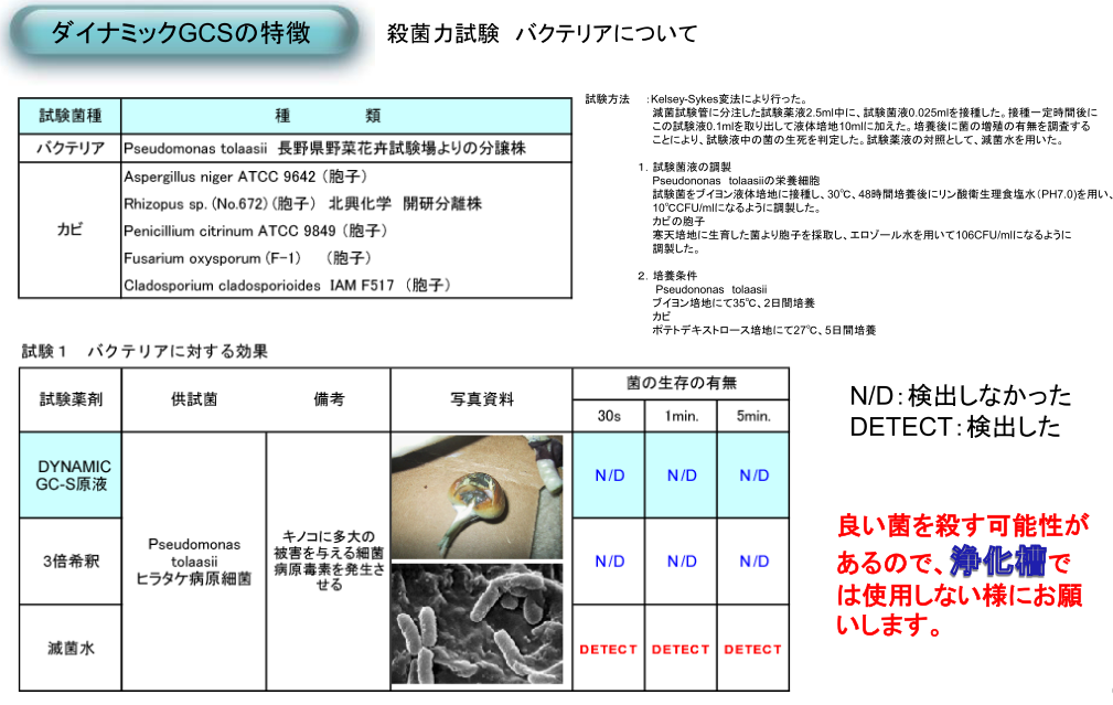 殺菌力の効果 各種菌、バクテリア、カビにおいて優れた殺菌力を保有します。